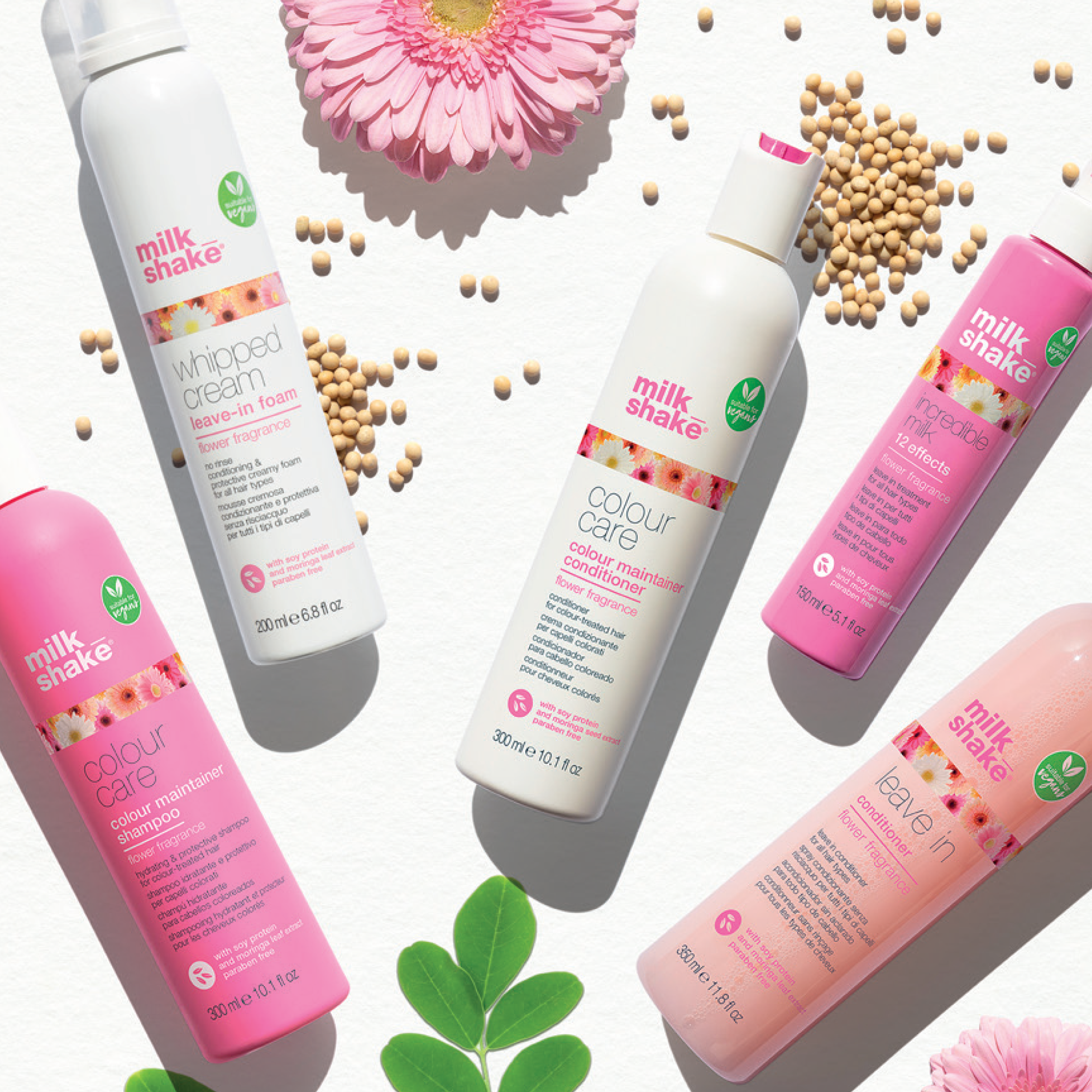 Line of protective treatments for colour-treated hair with special vegan-friendly formulas. A complete range that is the result of the combination of milk_shake®