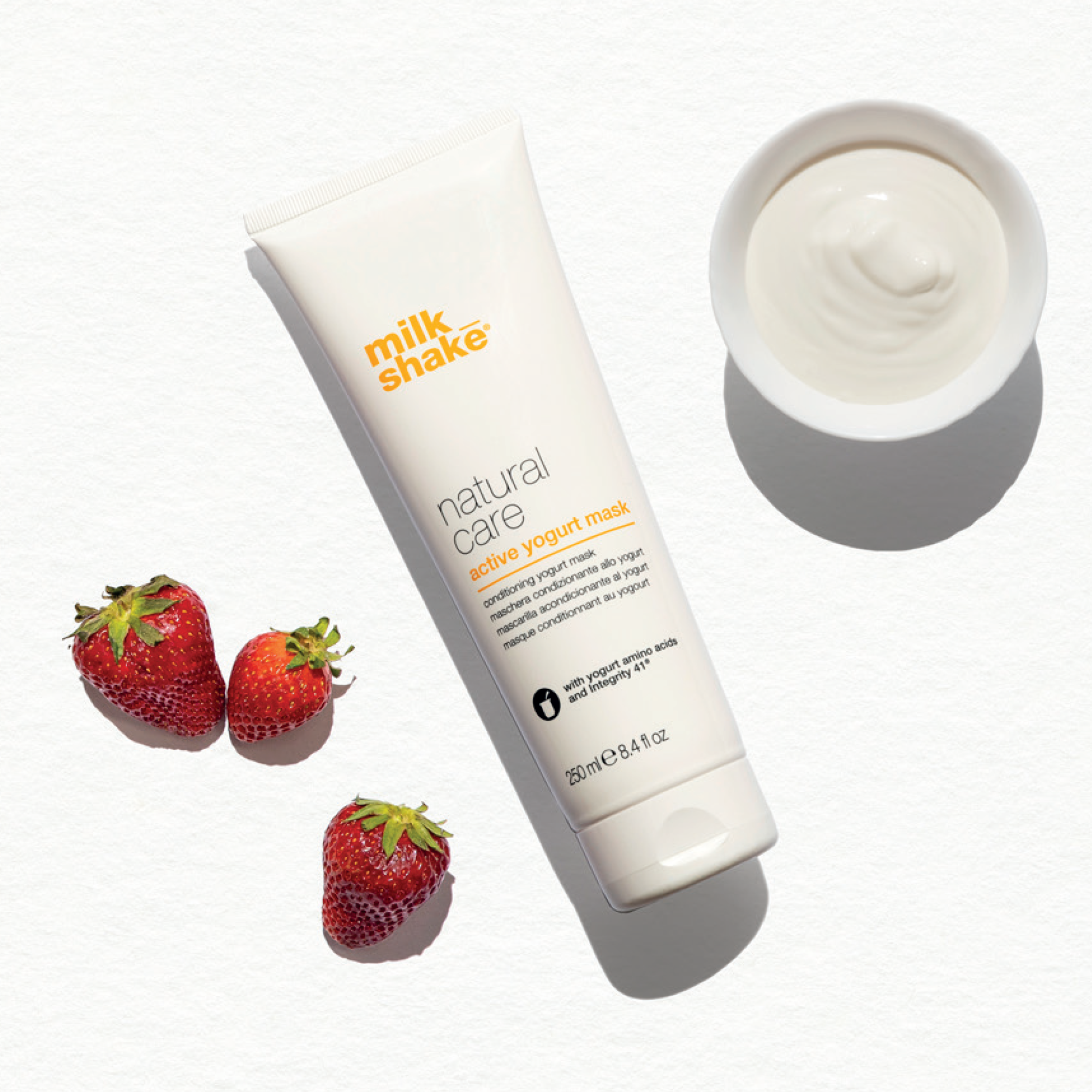 Nourishing mask based on yogurt amino acids, ideal for strengthening and conditioning natural or coloured hair: its emollient action counteracts the destructuring effect of chemical treatments and makes the hair strong and full bodied.