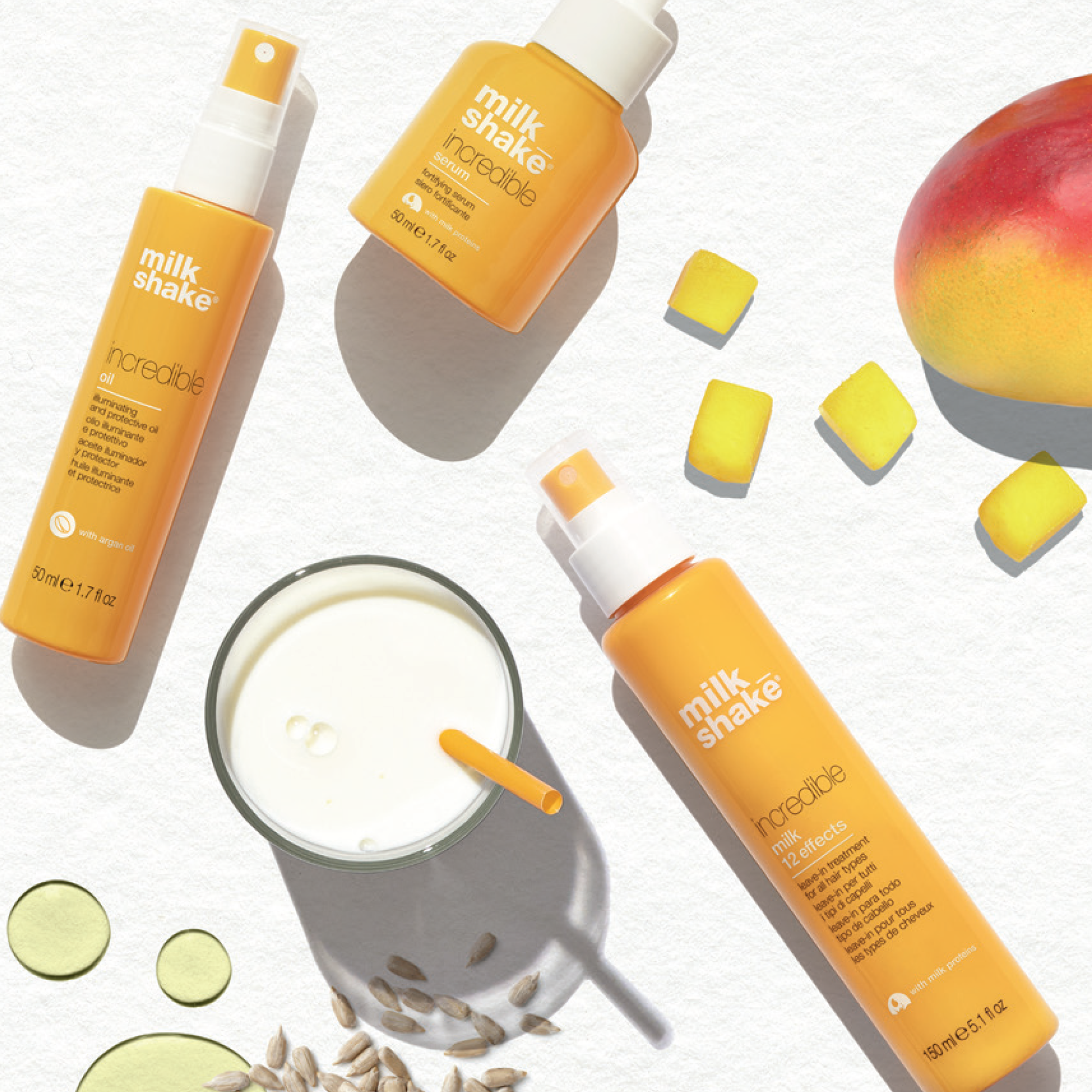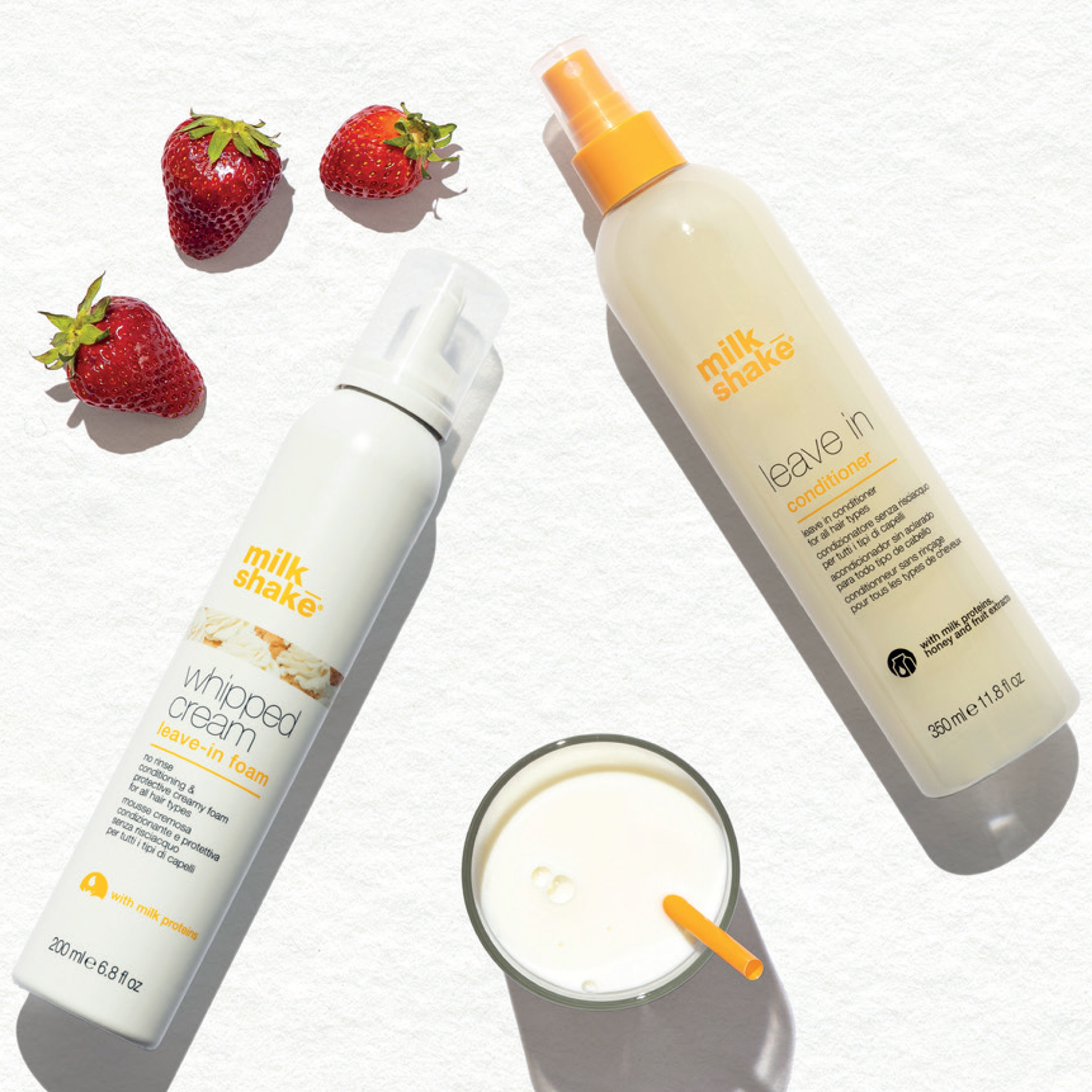 The iconic no rinse products that give new life hair: two different textures dedicated to the needs of each hair and the extraordinary benefits of milk and fruit for a conditioning, detangling and protective effect.