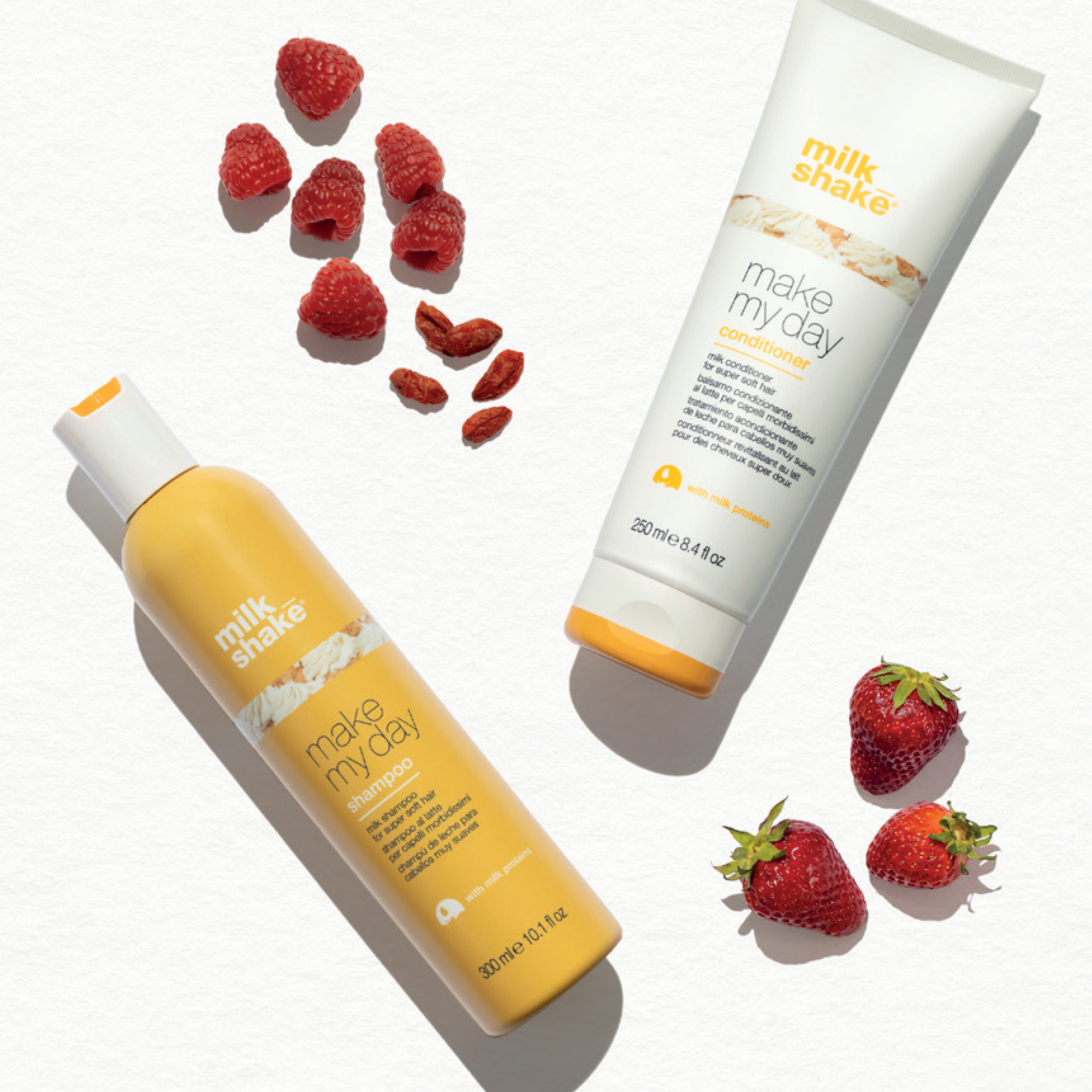 The complete routine that with a few simple gestures gives soft, disciplined and shiny hair. Our secret recipe to start the day with a smile: delicious ,soft, creamy textures, the irresistible scent of milk, sugar and vanilla and the precious nutrients of milk and fruit.
