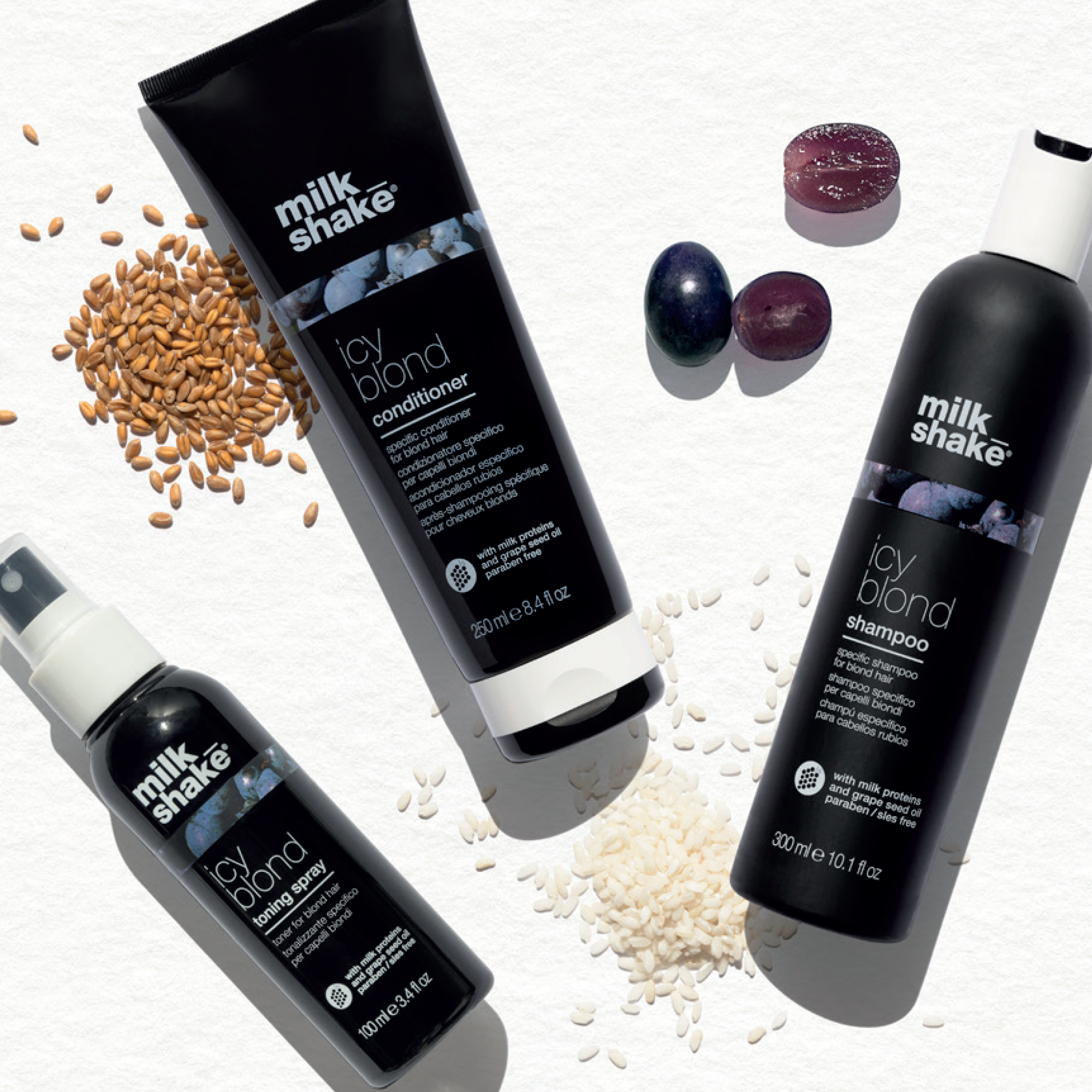 Product line formulated to neutralize the unwanted golden and intense golden (yellow) tones typical in blond, lightened and grey hair. Its delicate formulas, enriched with a violet pigment and a special complex of naturally derived active ingredients enhance cool highlights for flawless lightening.